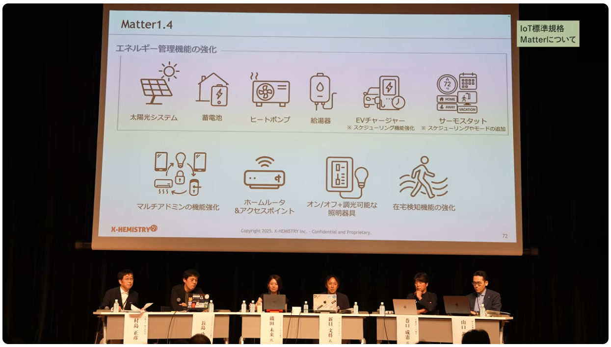 長島:続いて、Matterのこれからの方向性についてお話しをお伺いしたいと思います。対応デバイスの拡充のみならず、最近のバージョンではエネルギーマネジメントや、セットアップ(設定)などもサポートされていますね。この進化の背景や取り組みについて教えてください。