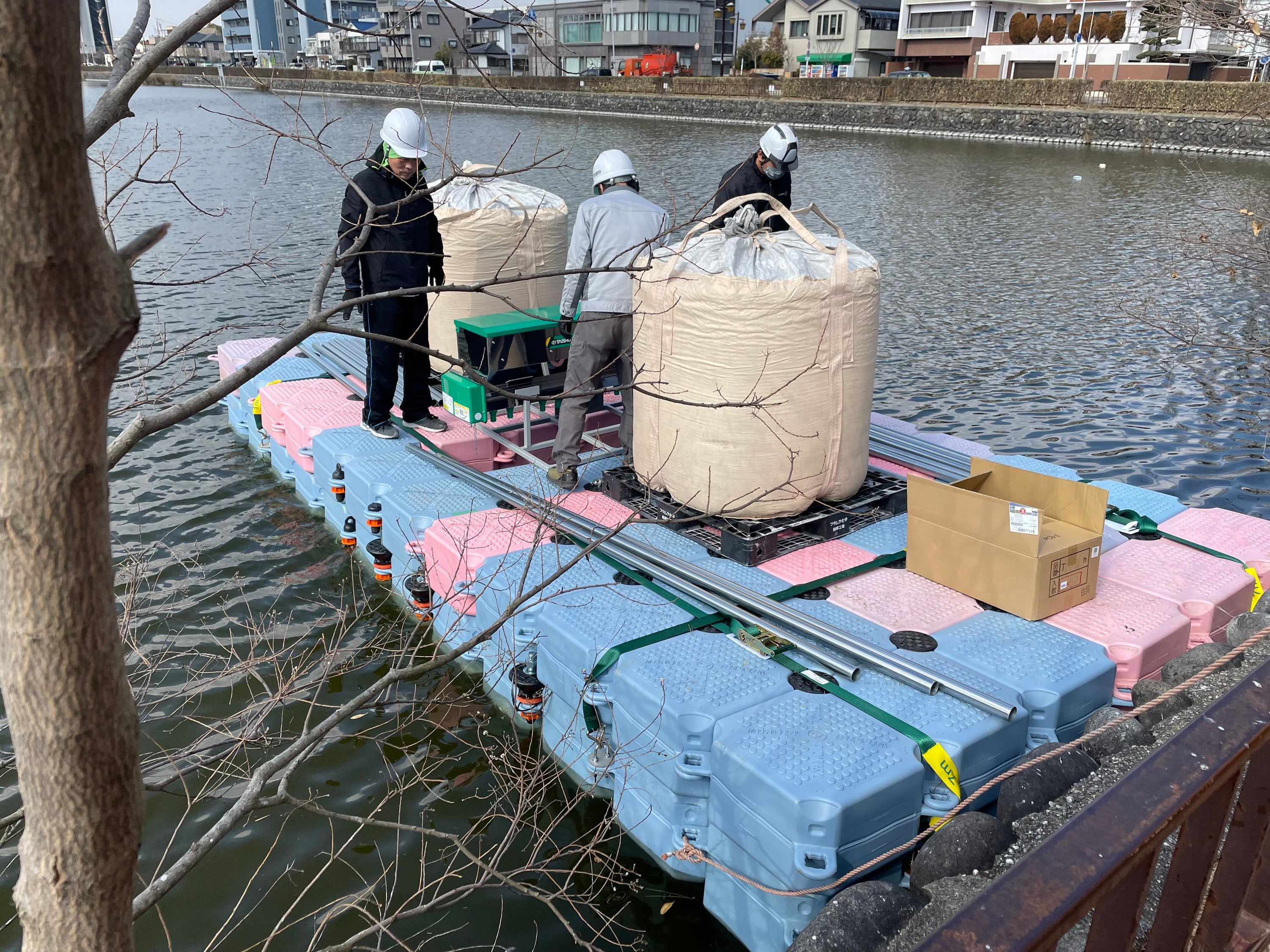 (使用事例 名古屋城のお堀の浄化作業のための台船として使用)