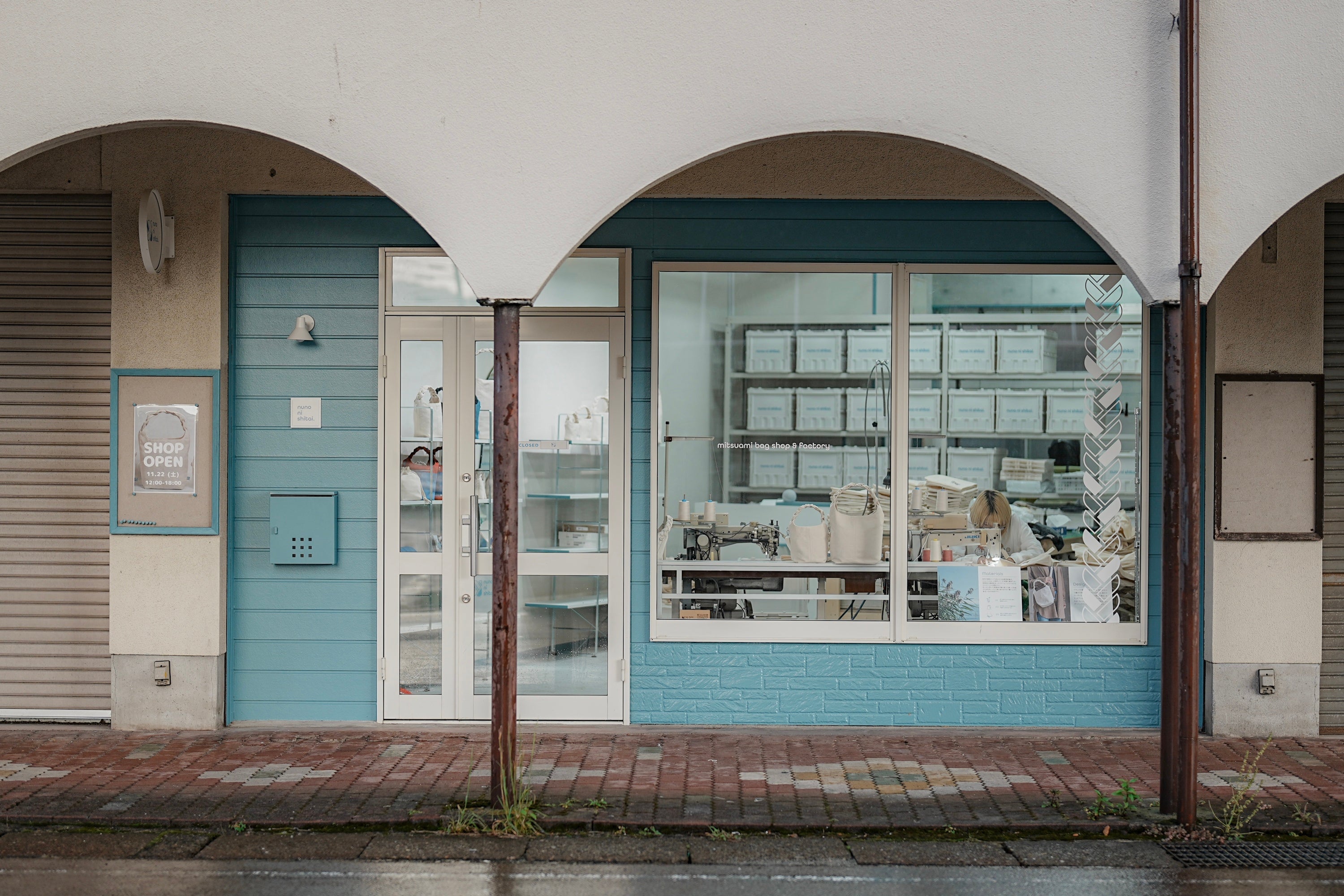 この場所は、JR湖西線 近江今津駅からシャッターが目立つローラン名小路商店街(なこじしょうてんがい)を抜けた先にあります。まずはこの場所で、地域の方に知ってもらいたい。そして、SNSを通じてつながったファンの方が「nuno ni shitai.」をきっかけにお店に来てくれることで、少しでも人通りの少ない通りに活気が生まれればと考えています。