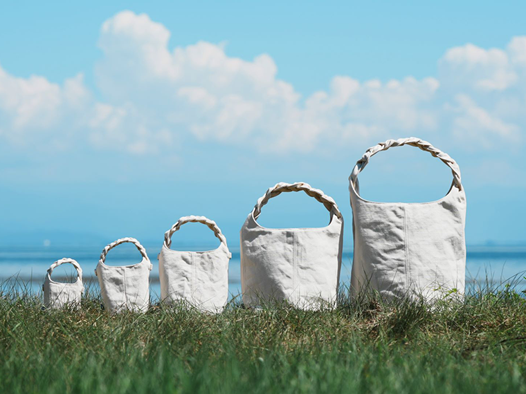 はい。持ち手の三つ編みが特徴の帆布バッグですが、滋賀県・琵琶湖生まれの素材ヨシ(葦)を使用した「琵琶の葦布®️」(高麻株式会社の登録商標)でつくられています。三つ編みの持ち手は、長さや太さを何度となく試作して完成させました。