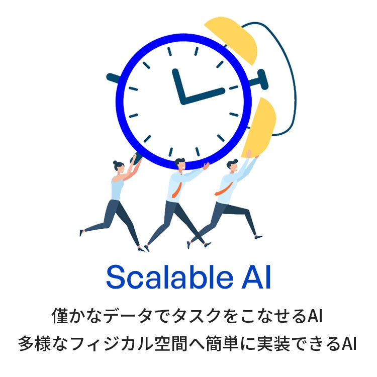 パナソニックが掲げるAI開発のコンセプトの一つ。優れたAIを一つ作るだけでなく、それをさまざまな製品やサービスに素早く、効率的に展開(スケール)させていくための技術や仕組みのこと。「あらゆるお客様に素早くAIをお届けする」ことを目指しています。