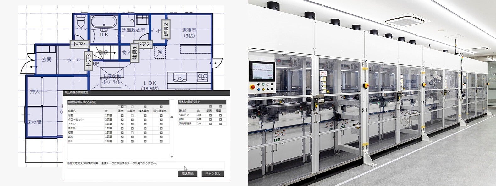 (左)AIが間取り図を解析し、建材数量と見積りを自動化。従来の手作業を効率化し、時間を大幅短縮 /(右)AIを活用した自動実験が可能なスマートラボ自動実験室
