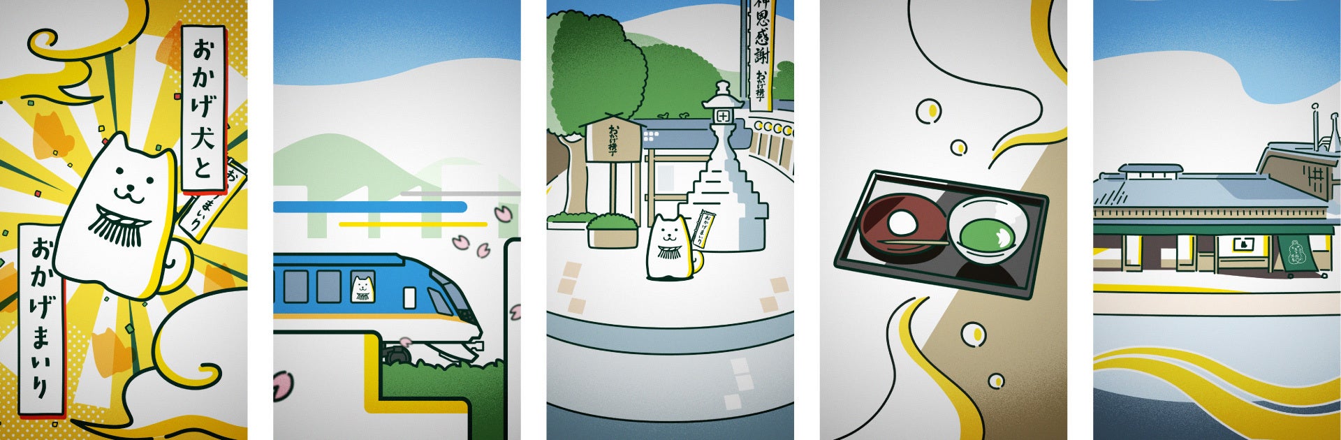 この節目に、伊勢へ向かう玄関口となる近鉄名古屋駅ホームの看板をリニューアルし、スマートフォンからはおかげ犬の物語が続いていく短いアニメーションもお楽しみいただけるようにしました。