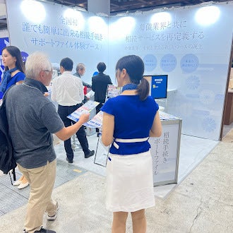 展示会では、体験ブースとして参加しました。相続サービスのジョイント商品というもの自体がなかったので葬儀社の方はもちろんのこと。士業事務所の方々にも商品を手に取って使用方法を150名以上の方に体験をしていただき、非常に好意的な評価を受けることができました。葬儀会社の相続担当者の方や社長様、関連会社様にはスタッフはもちろん私自身も1つ1つお話をして行きました。沢山のアンケートも回収できました。相続手続きを初めて行う人でも使いやすく、さらに、士業資格を持つ専門家がきちんと監修していることで、法的にも安心して利用できる商品だと評価されました。