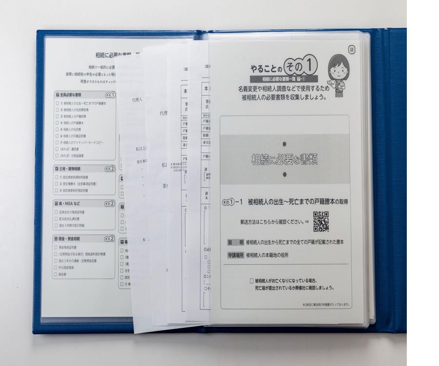 そんな負担を少しでも軽くしたい、その思いから開発されたのが「相続これ1冊(継承ノ綴り)」です。相続手続きに必要な書類と手順が一冊にまとめられていて、面倒な相続手続きが簡単に進められるようになります。