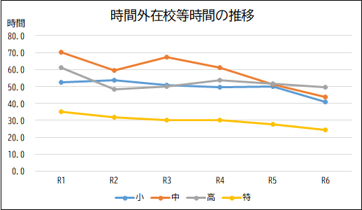 教職員の残業時間にあたる「月当たりの時間外在校等時間」は、令和元年度と令和6年度で最大37.8%減少していました。