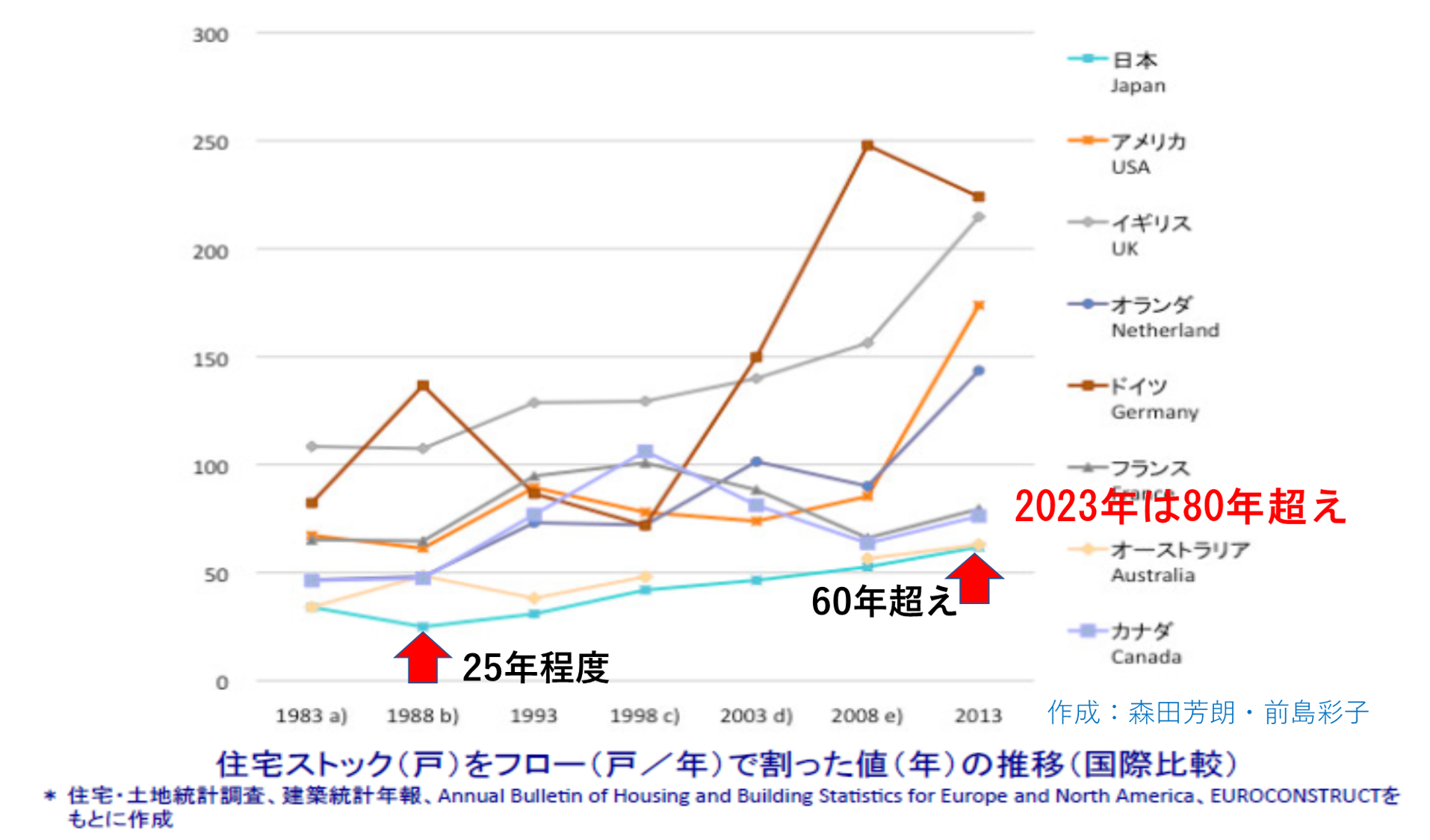 ※2 住宅・土地統計調査、建築統計年報、Annual Bulletin of Housing and Building Statistics for Europe and North America, EUROCONSTRUCTをもとに森田芳朗氏・前島彩子氏が作成