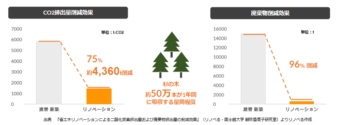 ※詳しくは「リノベーションでCO2排出量を76%、廃棄物排出量を96%削減(※1) 脱炭素社会実現に向け、産学共同研究を実施」をご覧ください。