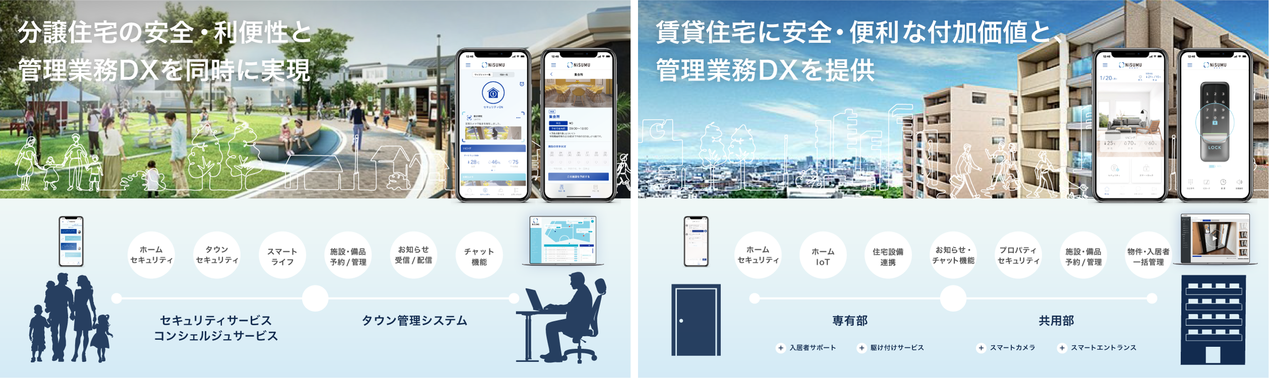 更に、2021年には賃貸住宅にもセキュリティ賃貸物件という付加価値と、管理会社の管理業務DXを実現する『NiSUMU RENT(ニスムレント)』サービスを提供開始しました。