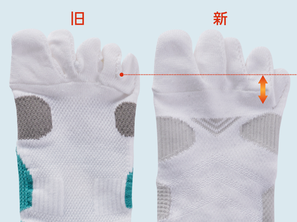 数多くの機能性を維持し、小指の仕様変更する為に編み機を幾度となくカスタマイズし、小指の位置を変えることで人間本来の素足に近い今回の製法にたどり着きました。現在、特許を出願中です。