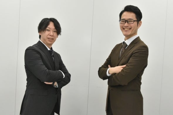 日立製作所の栢下洋一氏(左)と井原謙氏(右)。