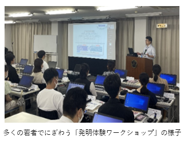 本コンテストの応募期間と重なる夏休み期間中には、アドバイスを受けながら発明のワークフローを体験できる「発明体験ワークショップ」を提供しています。令和6年度は、仙台、さいたま、広島、大分の4都市で開催しました。このワークショップを始めた令和3年度以降、毎年度この参加者の中から受賞者が誕生しています。