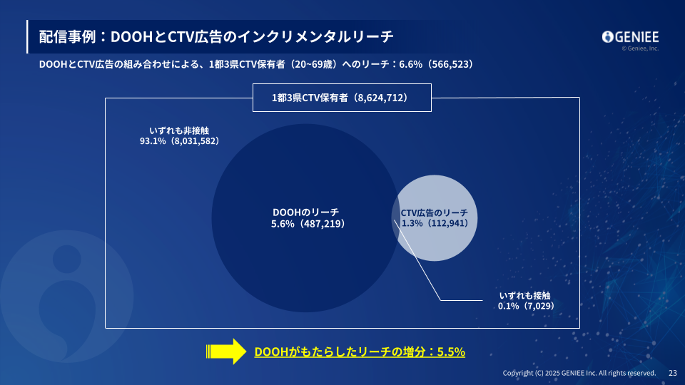 今回の検証配信では、DOOHとCTV広告の同時配信がリーチを増加させることが確認されました。