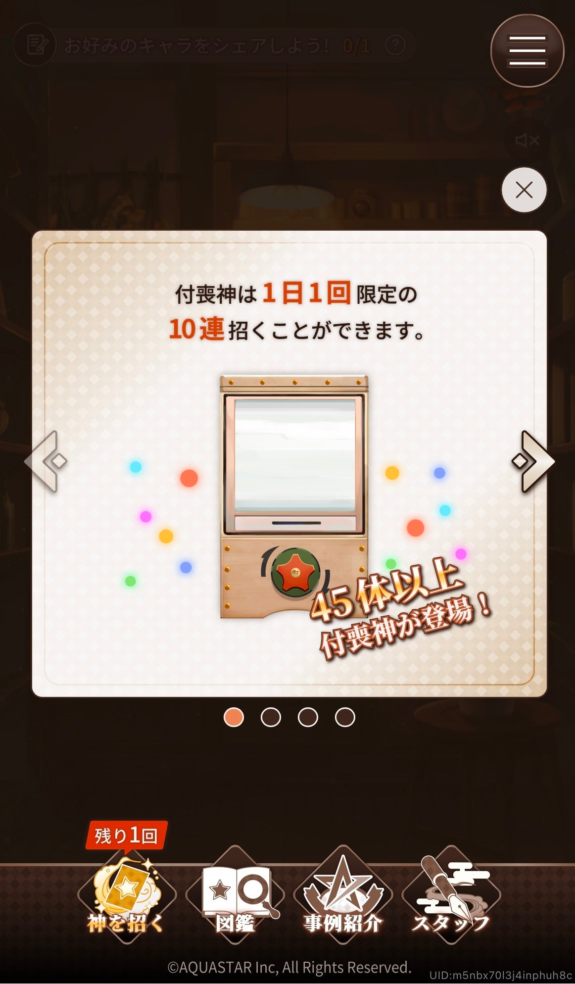 このサイトでは、1日1回ランダムで10枚の付喪神(つくもがみ)のカードを手に入れることができます。さらに、手に入れたカードをSNSでシェアすると、追加で最大50枚まで引くことも可能です。
