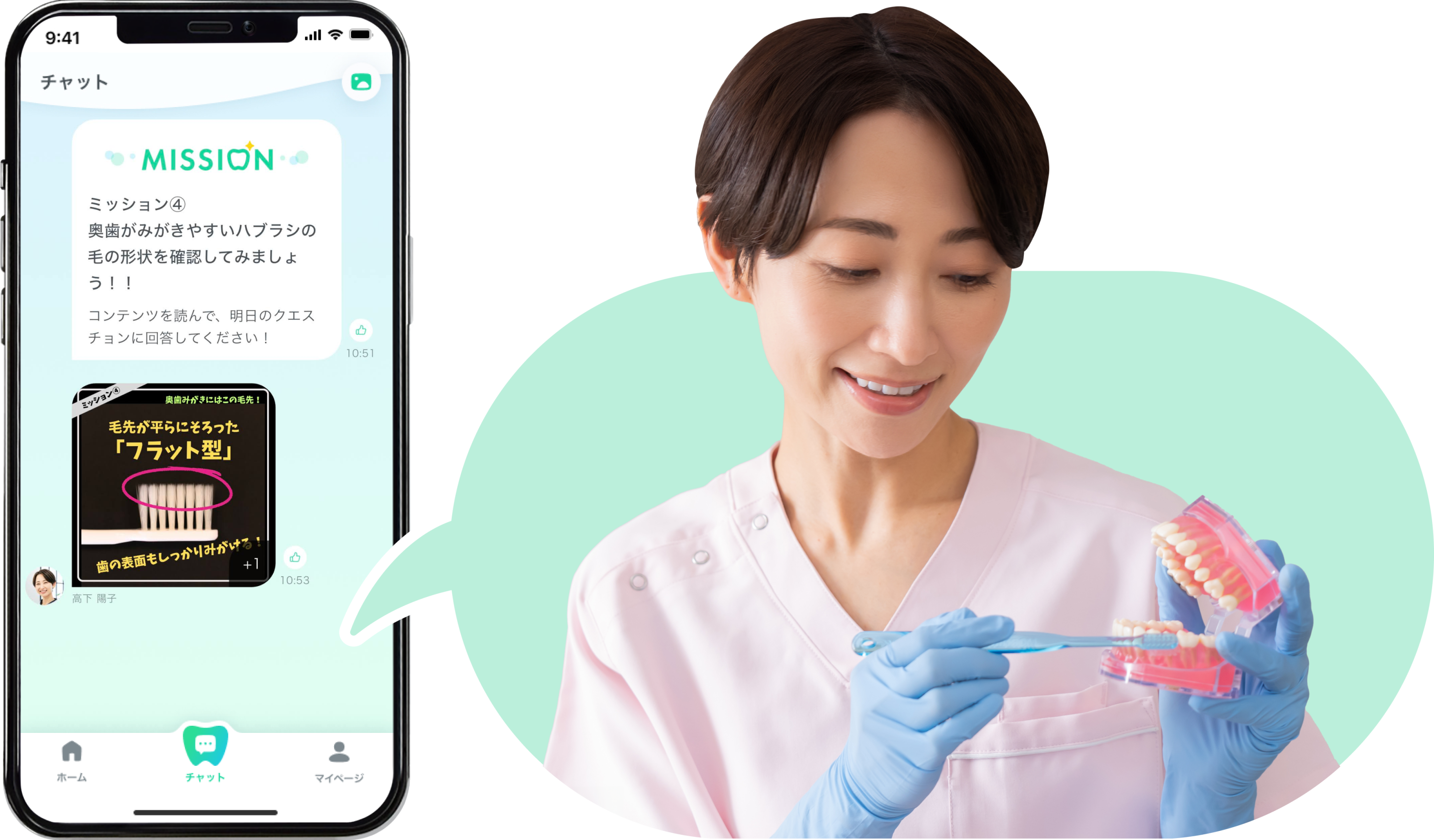 AIでなく歯科衛生士が受診後に患者さんをチャットでフォローする形にしており、そのチャットでのコミュニケーション内容には特に力を入れています。アプリの体験をより身近に、そして前向きに続けてもらえるよう設計しました。