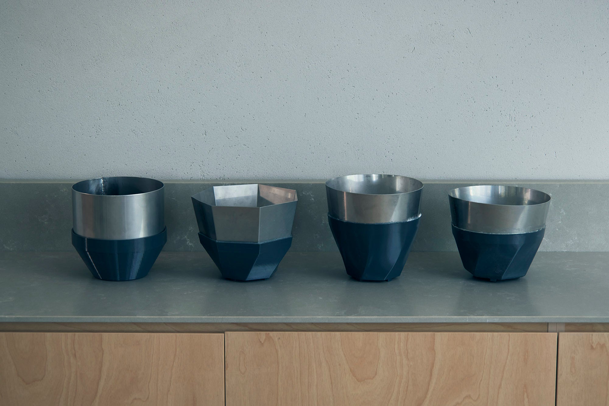 容器は7角形にしました。多角形にすることで生地が回転せず、容器の面に叩きつけられ、生地にしっかりと力が加わります。面の形状や角数は、生地が最もランダムに動き、生地全体が均一にこねられる形を模索しました。また、器の下部はすり鉢状になっています。材料が下に集まり、それを羽根が巻き込んでいくことで、材料を余すことなく均一にこねます。