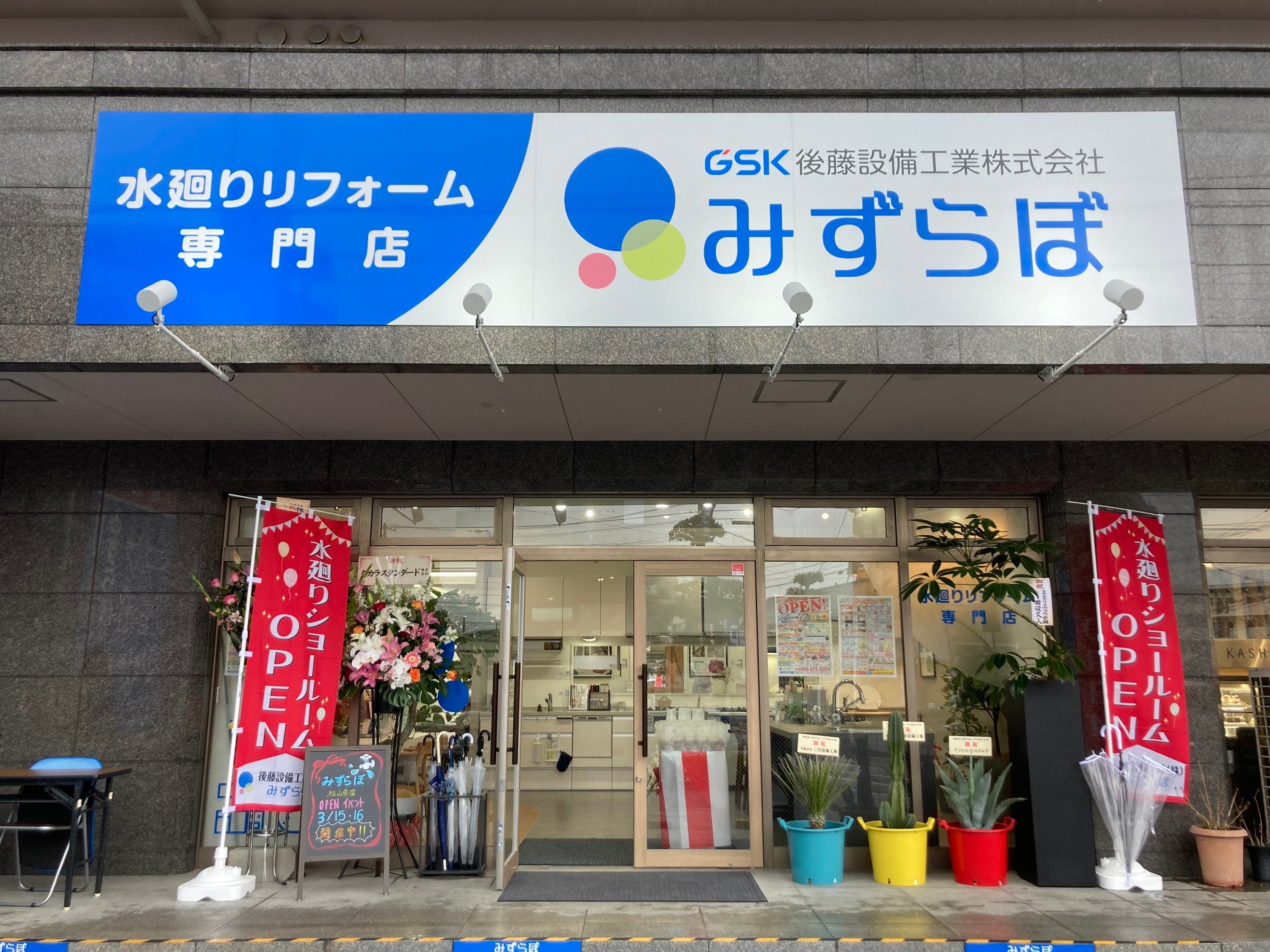 後藤設備工業様は、1号店の経営が順調であったことから、愛媛県にて2号店(みずらぼ松山東店)をオープンされました。当社としても、近隣のお客様の「水まわり」のお困りごとの解決に寄与できることを大変嬉しく存じます。