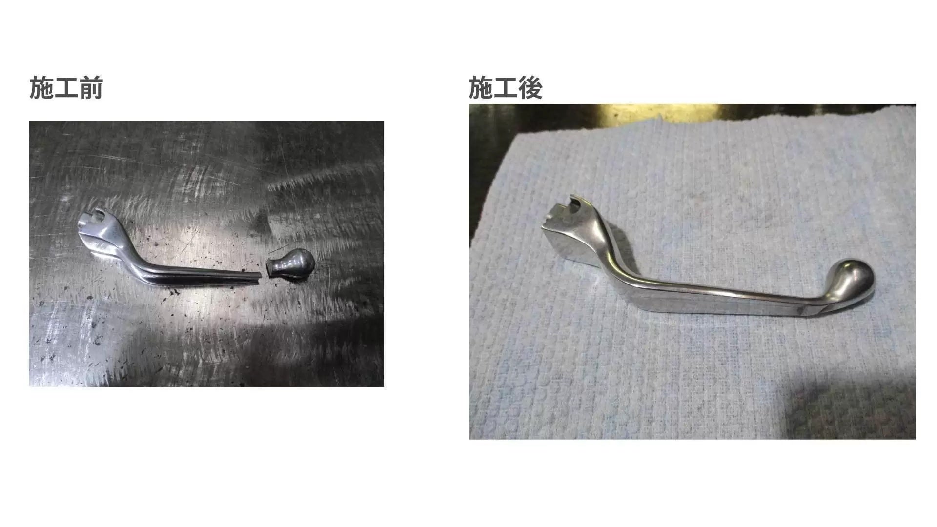 『カシマウェルディング』の仕事は、一つひとつオーダーメイドで応えるものばかりです。こだわりは高品質の溶接、仕上がりの美しさ、そして納期を守ることです。例えば、折れたバイクのアルミ製ブレーキレバーも溶接で繋ぎ合わせ、さらに補強もした後、綺麗に研磨して依頼主へ戻しました。![]()