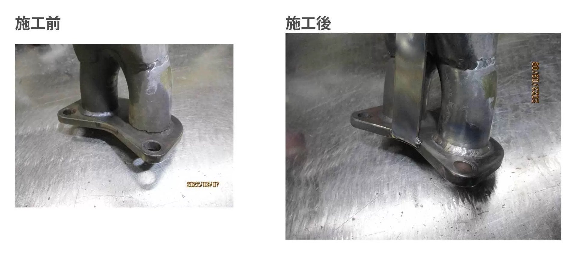 <ステンレスマフラーの持ち込みでご依頼人と相談しクラック修理だけではなく