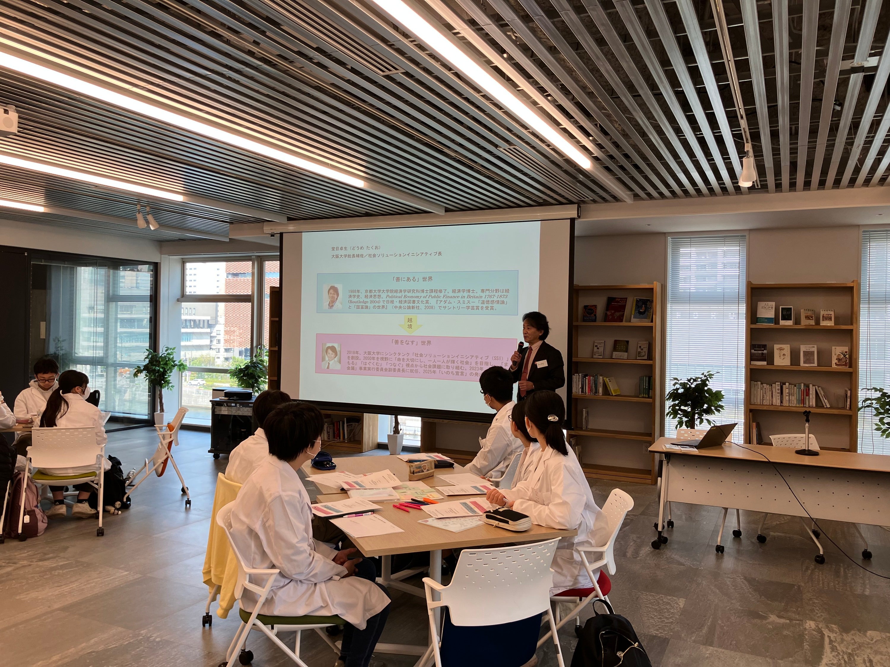 2日目は、大阪大学中之島センターにて開催しました。大阪大学SSIの堂目 卓生先生から「『繊細の精神』を使って『いのち』を思う」というご講話をいただきた。講話を通じて、未来を拓くために必要な精神として、直感的に全体を把握するなどの『繊細の精神』の必要性について学びました。