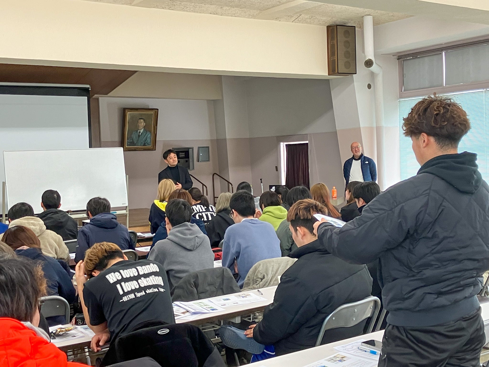 学校法人 八紘学園 北海道農業専門学校での白川氏と生駒による授業の様子