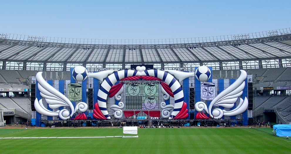 そうして着実にそして進化を遂げるバルーン。その最たるものが華やかな舞台芸術の役割を担うバルーン演出でしょう。今や、『エアロテック』のバルーンはアイドルや有名ミュージシャンのコンサートには欠かせないもの。