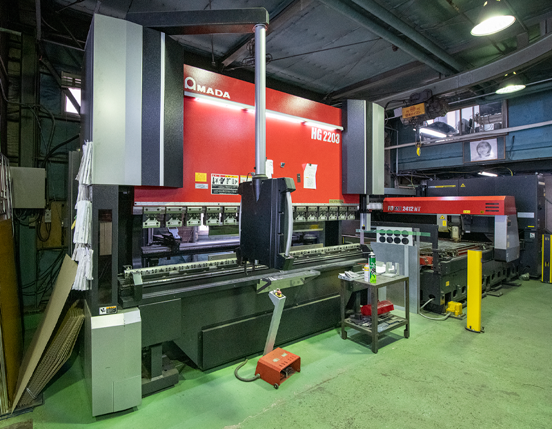 まずは26ミリの鉄が切れる最新レーザー加工機の導入です。アルミやステンレス、鉄等の金属の加工範囲を広げ製品精度と生産能力の向上が為されました。次に220トンの圧力を有するベンダーを新規導入することによって0.3ミリから16ミリまでの精度の高い曲げ加工が可能になりました。