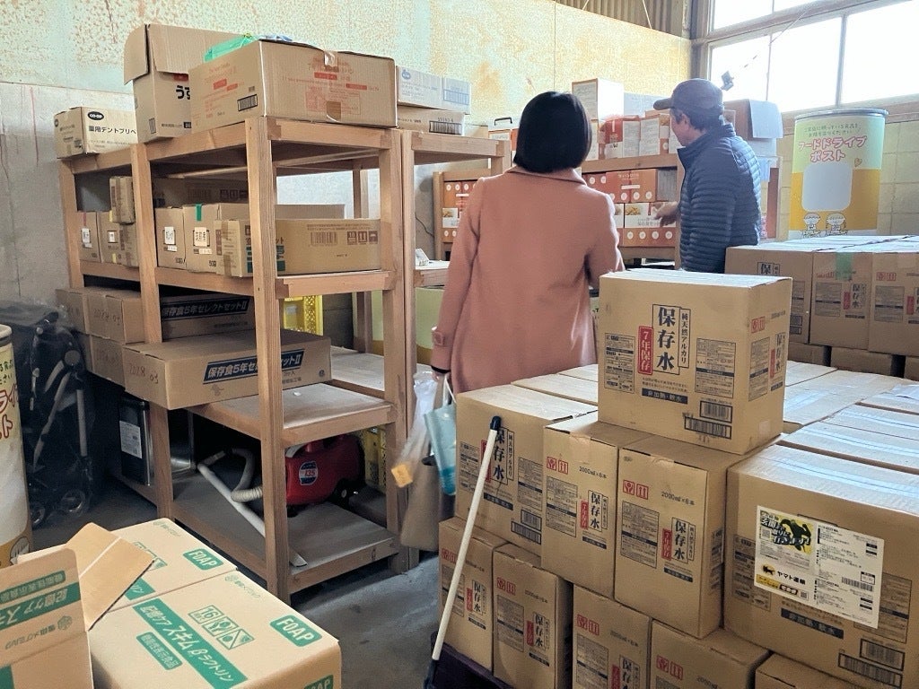 ▶災害に備え、備蓄品を管理するスタッフ部門や関係者の皆さん