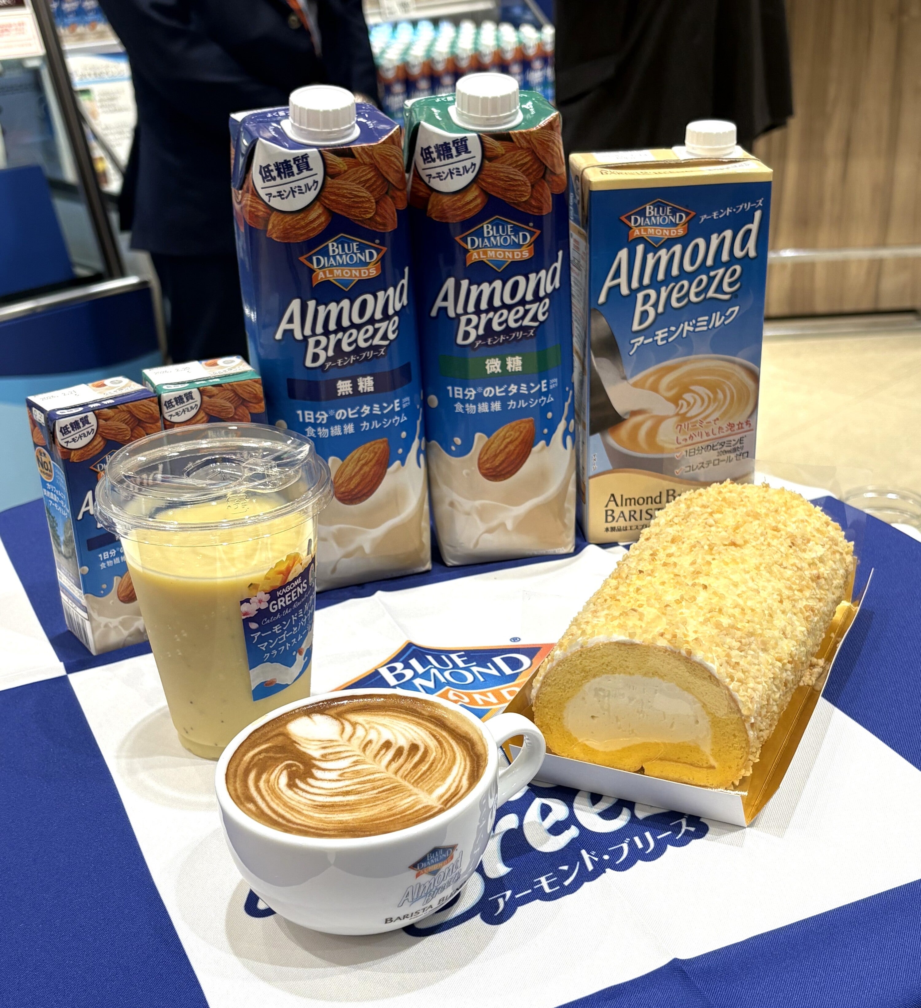 直近では、阪急うめだ本店の地下1階・ツリーテラスでポップアップイベントを実施。「アーモンド・ブリーズ」の試飲・販売に加えて、「堂島ロール」とコラボした「堂島アーモンドミルクロール」や、「STREAMER COFFEE COMPANY」の「アーモンドミルクラテ」などを用意し、そのまま飲むだけでない、アーモンドミルクのさまざまな楽しみ方を提案した。