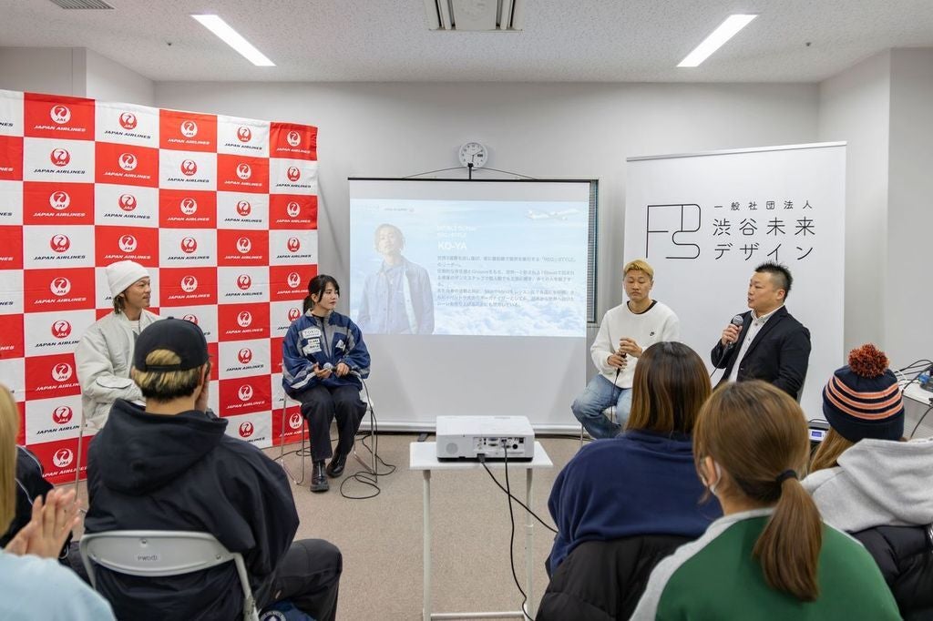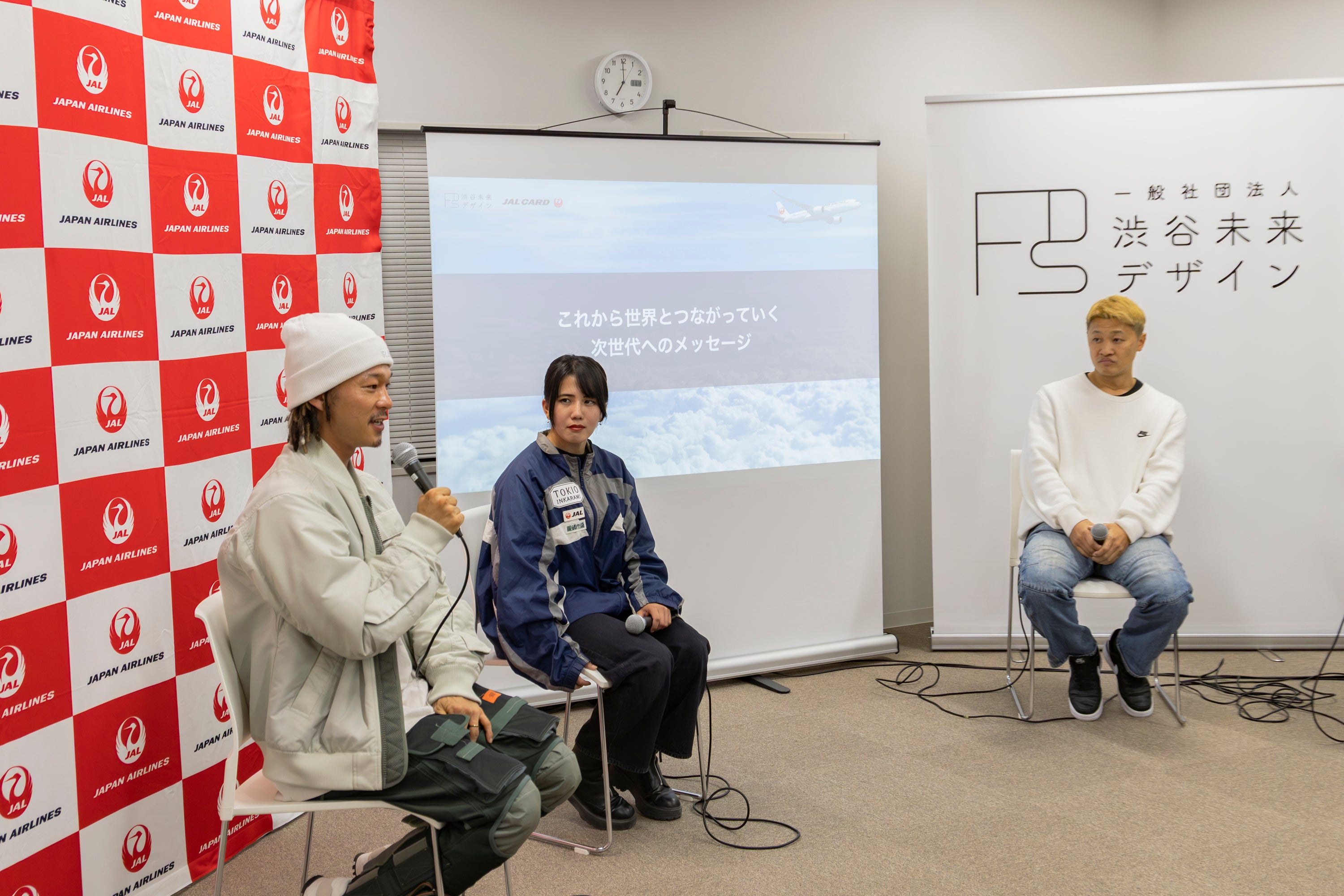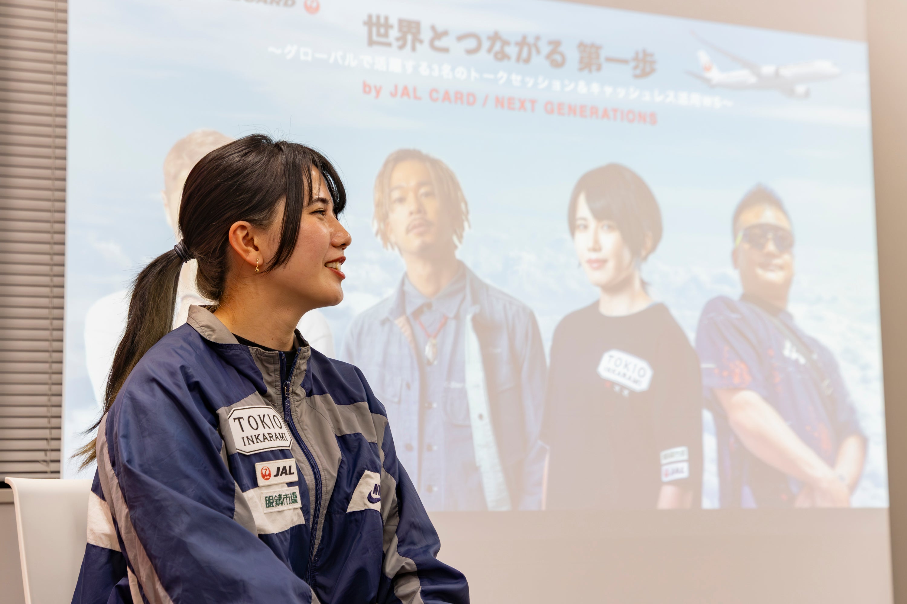2部構成のうち第1部は、ストリートスポーツで世界を舞台に活躍する、泉ひかり選手(JALオフィシャルスポンサーアスリート パルクール)、KATSU-ONEさん(日本ダンススポーツ連盟 ブレイキン本部長 ‘2024パリ五輪 日本代表ヘッドコーチ)、KO-YAさん(DOUBLE DUTCH REG☆STYLE)の3名をゲストとしてお招きし、ご自身の経験をもとに、これから世界へ羽ばたく学生の皆さんに向けて、若い頃から海外に行くこと、そして挑戦することの意義を語っていただきました。