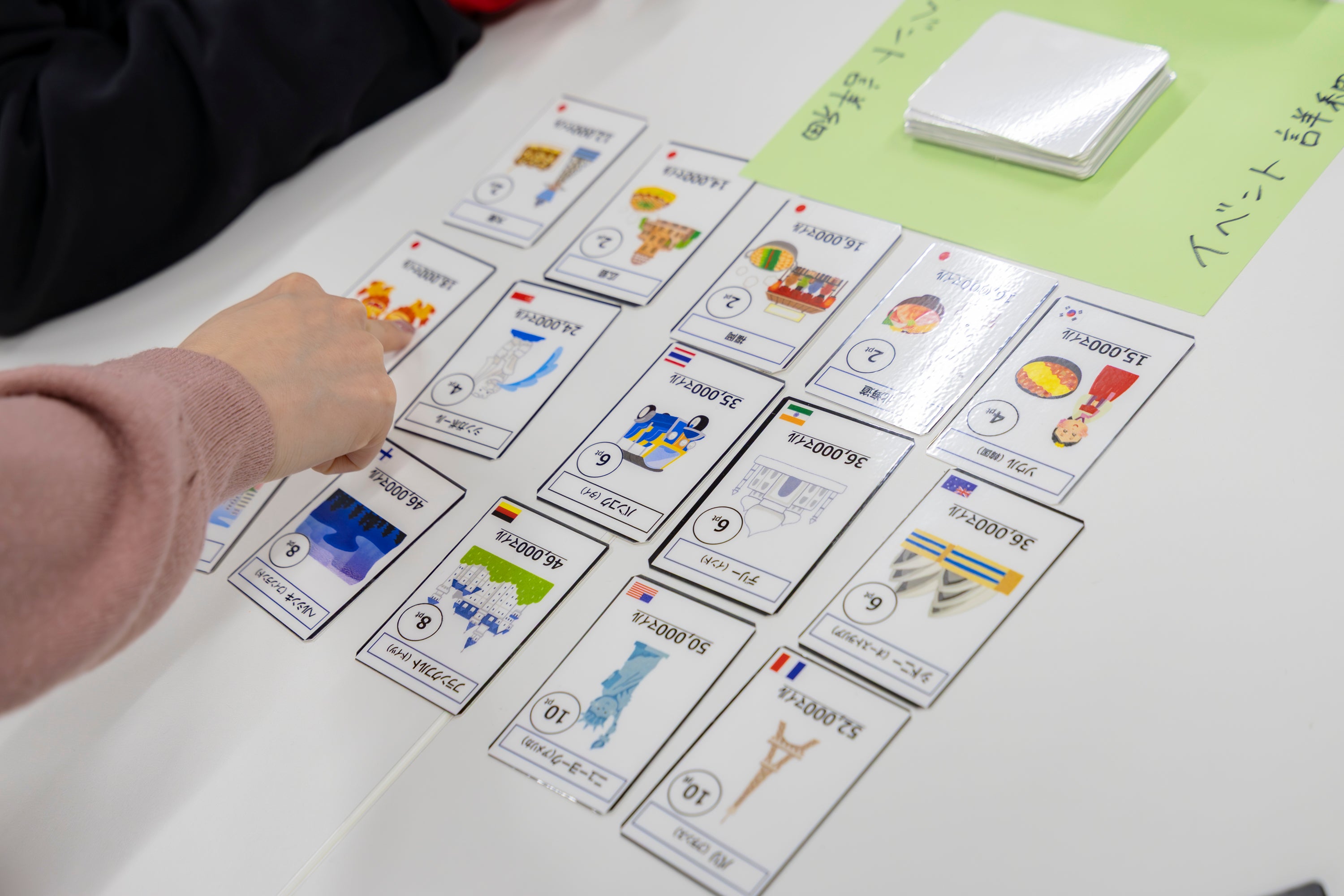 後半のゲーム大会に使用したカードゲーム(名称:マイラー)は、「JALカードを使うことでお得に旅に行けることを知ってもらいたい」「楽しくJALカードとマイルの仕組みを学んでもらいたい」という想いを込めて、今回のイベントのためにJALカードの社員が新たに作成したものです。ゼロから新しいゲームを作り出すのは苦労しましたが、AIを使ってゲームルールを考案し、メンバーで試行錯誤しながら「マイルをためて旅行に行く」をコンセプトにした戦略的カードゲームを完成させました。