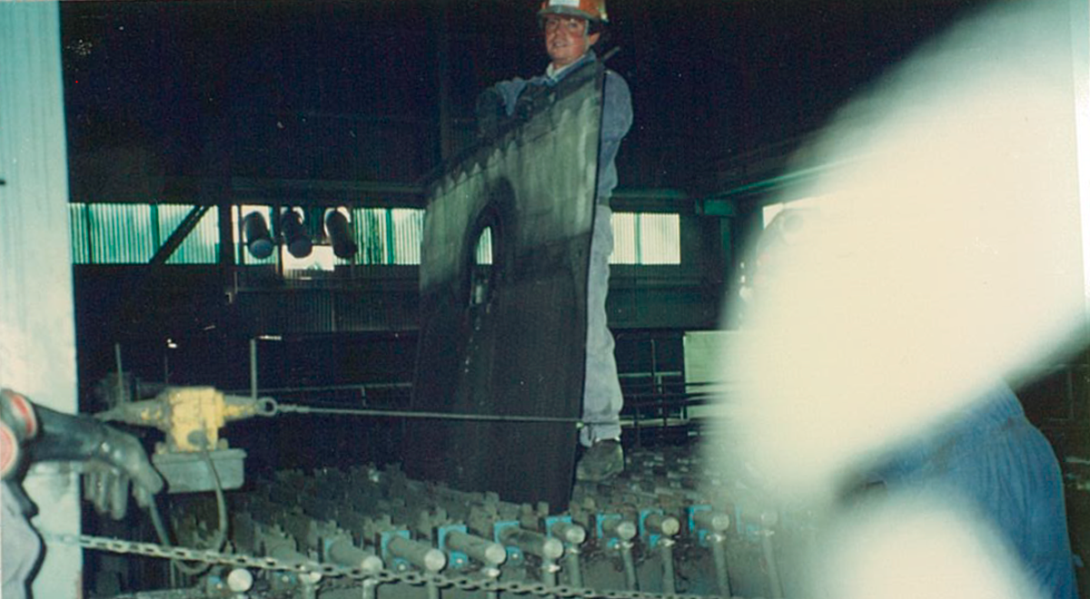 1976年、アメリカの大手企業・インガソールランド社から技術提携の申し出があり、北米・中南米の下水処理場や鉱山へフィルタープレスの輸出を始めました。当時、鉱山では、粉砕した鉱石に水分を加えて資源と残渣を分ける「コンセントレート(精鉱)」の固液分離にフィルタープレスが使われていました。当社は1980年代初めにフィルタープレスの大型化に成功しました。大量高速処理が鉱山業界のニーズと合致し、順調に受注を伸ばします。ところが、円高の影響に加え、より高性能な脱水機へと市場のニーズが変化し、次第に受注が減っていきました。