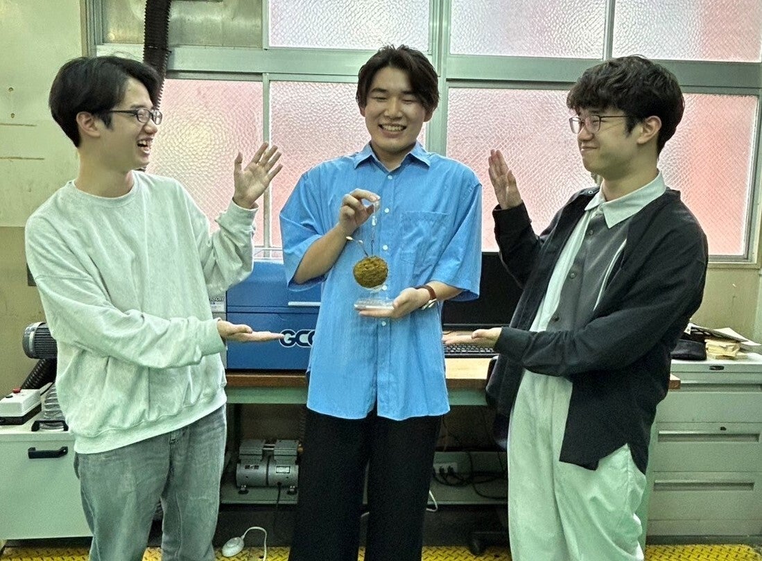 受験期でもあった3人は空き時間を使いながら試行錯誤し、約1ヶ月の開発期間を経て、2023年の8月に「苔玉スタンド」が完成!……しかし、ドラマはそれで終わりませんでした。