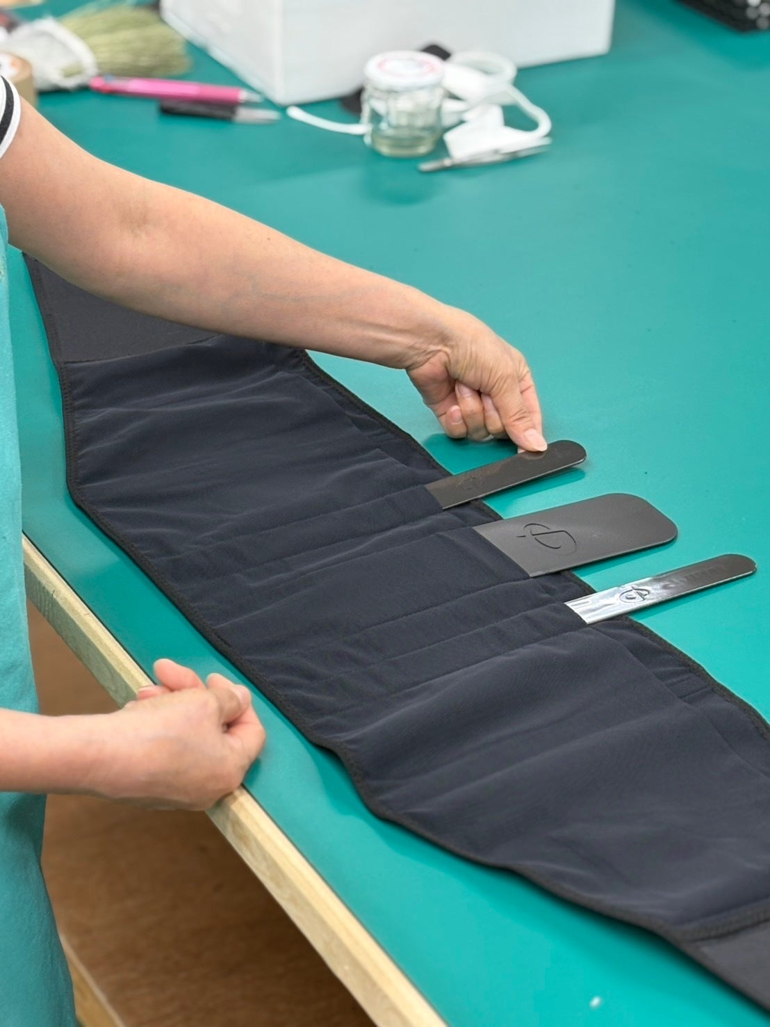 「毎日、頭のなかはサポーターのことでいっぱい。固定力を維持しつつ、快適性を保つにはどうしたらいいか、試行錯誤を繰り返しました。最終的に現状のサポーターの機能を融合し、そこにプラスαを加えることにしました。わかりやすく言うと、ソフト・ミドルの素材に、ハードの固定力を加える形にしたのです」