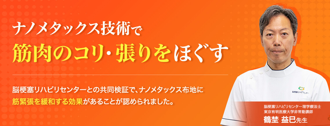 【ナノメタックス技術】脳梗塞リハビリセンターとの共同検証で、ナノメタックス布地に「筋緊張を緩和する効果」が実証
