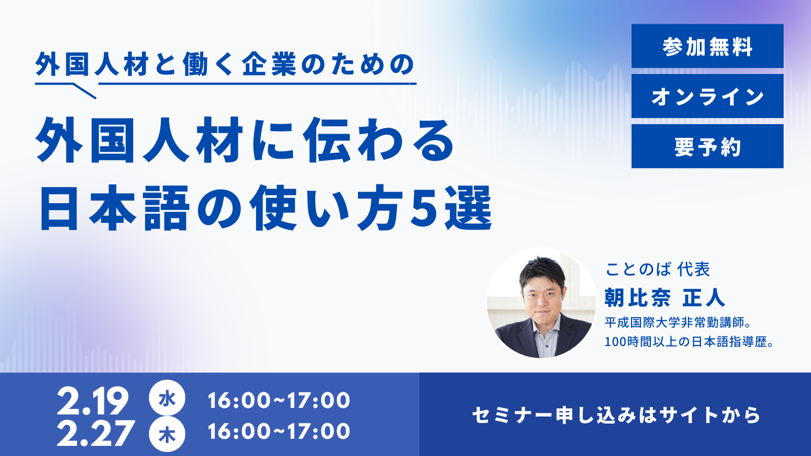 また、現在、”外国人材に伝わる日本語の使い方5選”セミナーの参加者を募集しています。オンラインセミナーとなりますので、会社やご自宅からお気軽に参加が可能です。