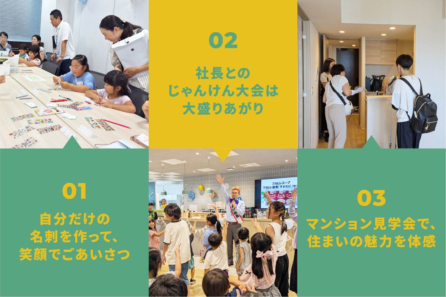 本イベントでは社員の家族の皆さまをオフィスにお招きし、普段見ることのできない職場や住まいの空間を体験していただきました。参加した社員一同、日頃の感謝の気持ちや支え合う大切さを再確認する一日となりました。