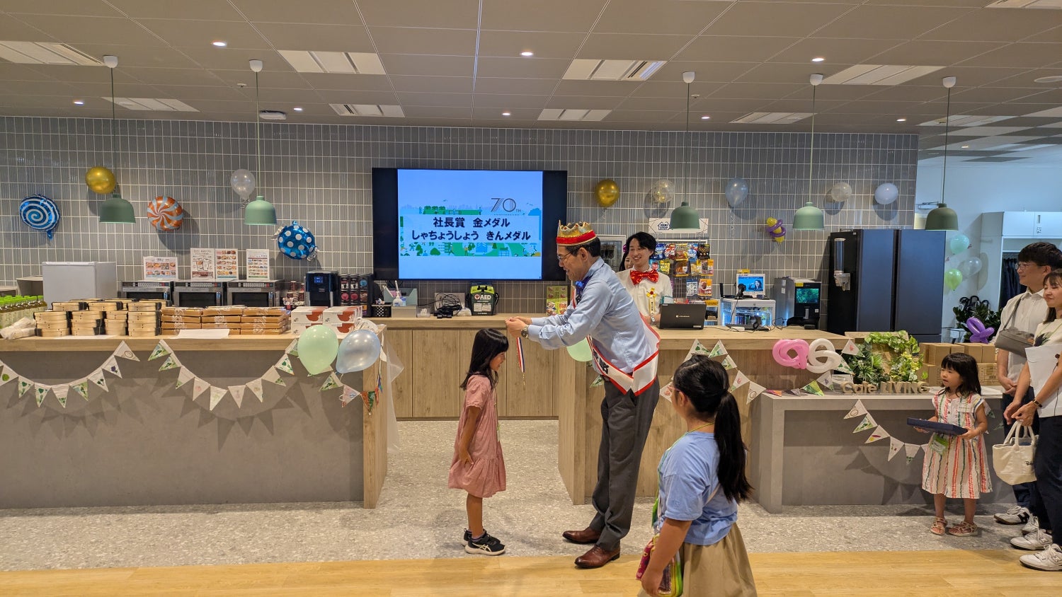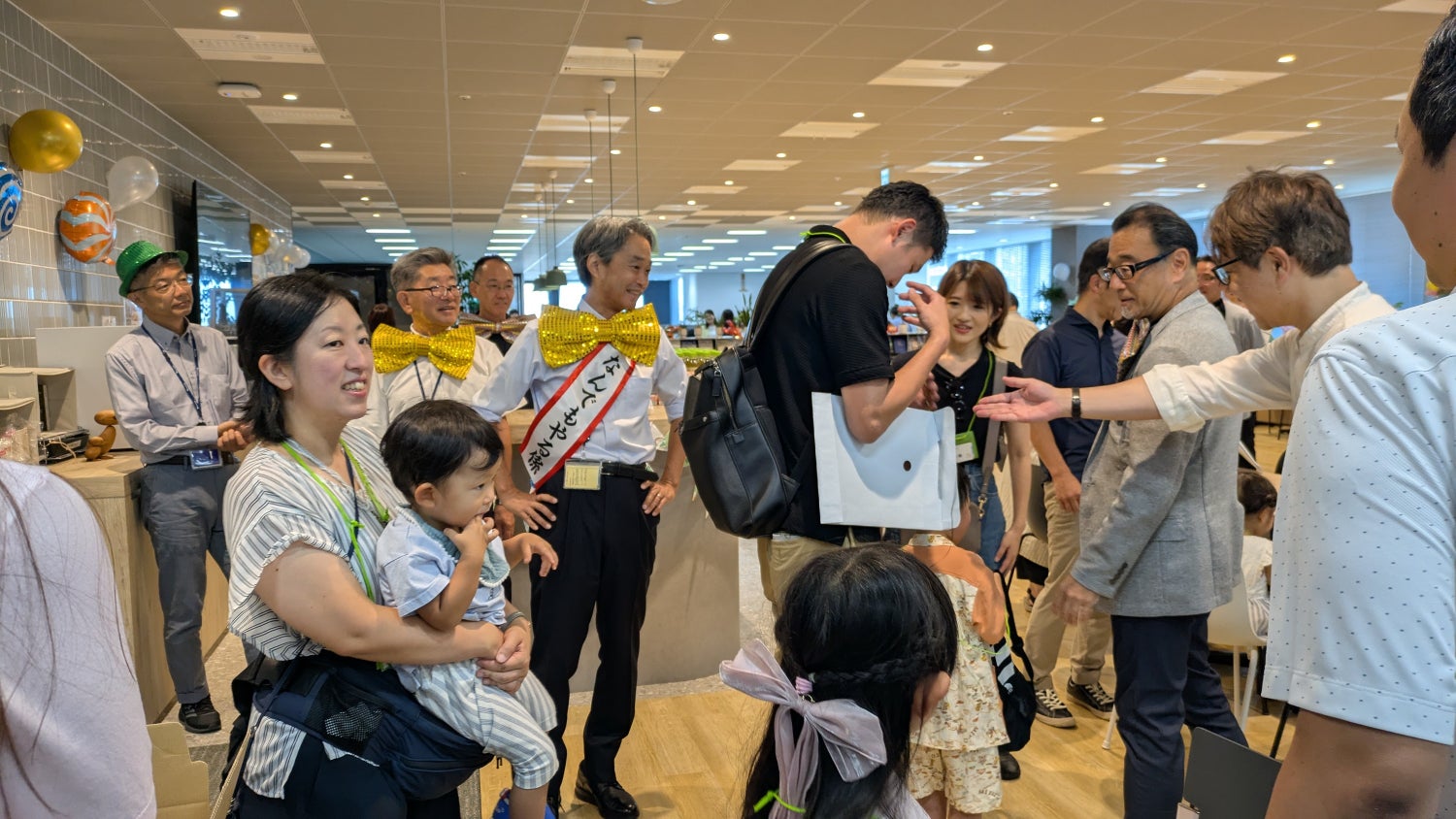 当日は社員およびそのご家族約70名にご参加いただきました。ガーランドや風船で装飾されたオフィスで、蝶ネクタイやハットを身に着けた役員がご家族を迎えて賑やかにスタート。名刺作成の会場は多くの子供たちで賑わい、思い思いのデザインの名刺を楽しそうに交換していました。また、社長とのじゃんけん大会では、じゃんけんに勝った子供たちの笑顔が広がり、会場全体が和やかな空気に包まれました。