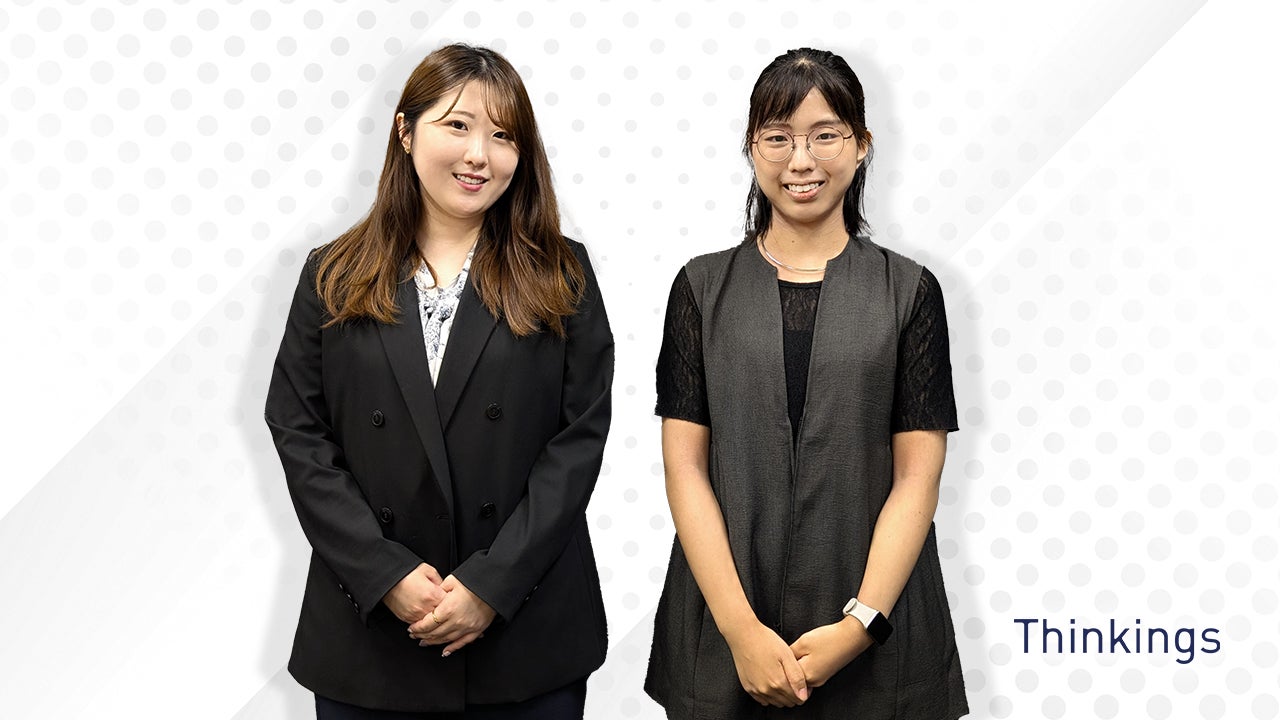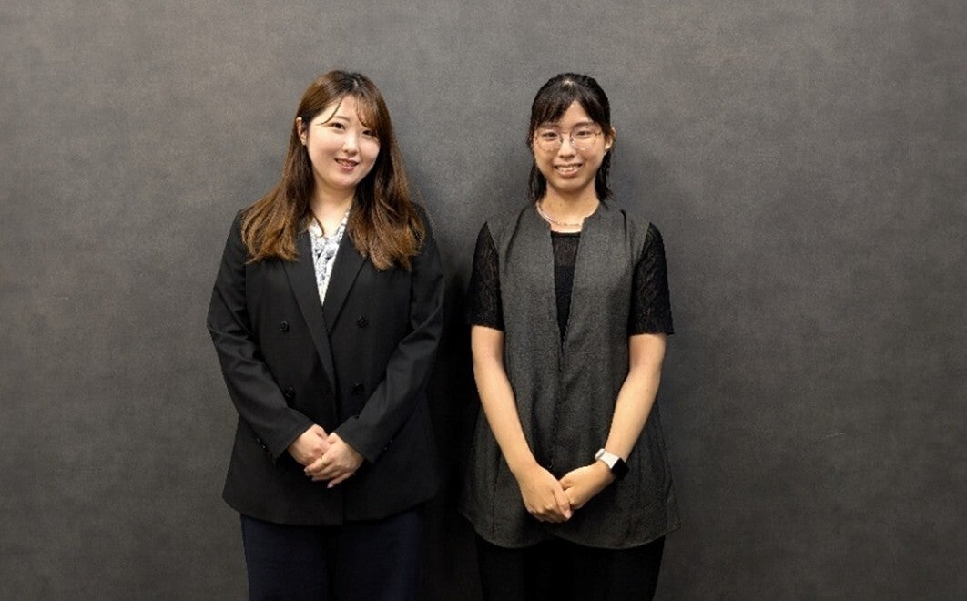 左:鷺谷友子(さぎや・ゆうこ)HR Team所属。2019年4月に新卒で入社。2024年3月に営業から人事へ異動。現在は新卒採用企画の立案、中途採用オペレーション、入社者の導入研修などを担う。
