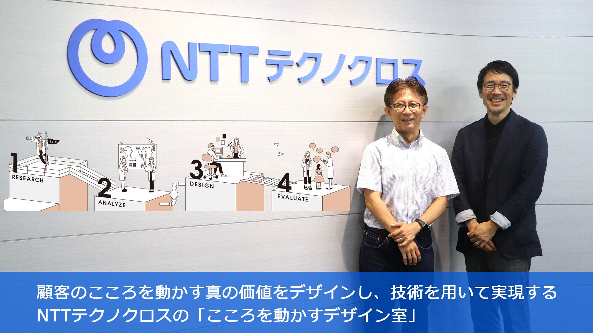 顧客の行動や価値観、取り巻く環境などを理解して解決策を見出していく「デザイン思考」の活用が拡がっています。NTT研究所の研究成果を活かした「技術力」をベースに事業を展開しているNTTテクノクロスは、デザイン思考の重要性にいち早く着目し、組織づくりにも取り入れています。その代表的なものが、デザインチーム「こころを動かすデザイン室」です。顧客のこころを動かす真の価値をデザインし、技術を用いて実現している「こころを動かすデザイン室」のこれまでの歩みと代表的な事例について、室長の宮本 勝とディスティングイッシュトデザイナーの大野 健彦に伺いました。