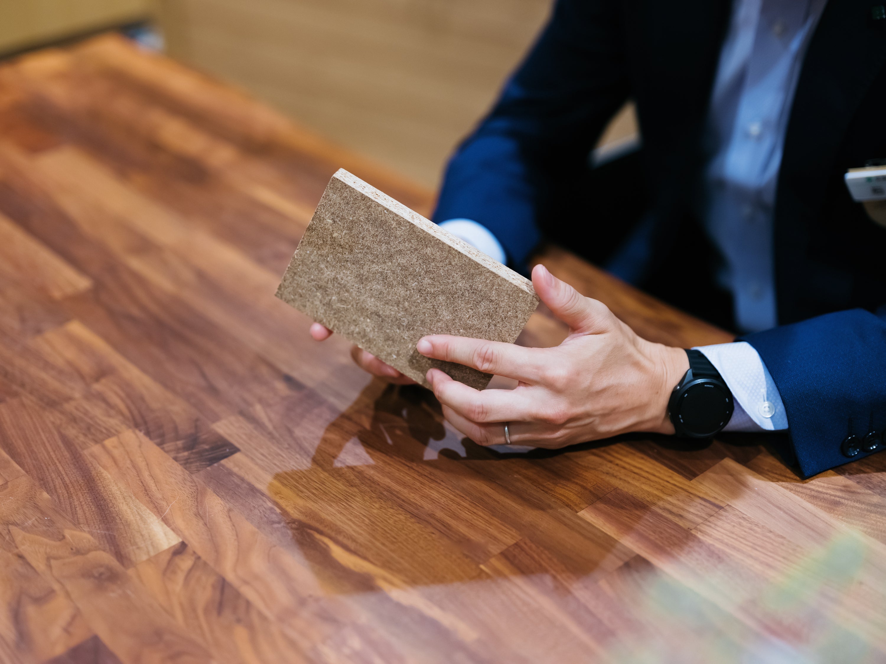 製造事業で担当していた「パーティクルボード」。家具や構造材として使用される。
