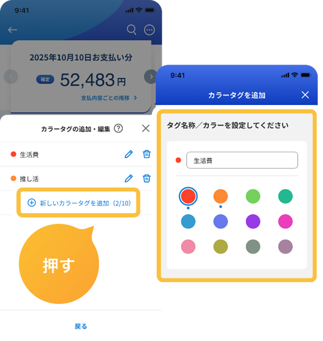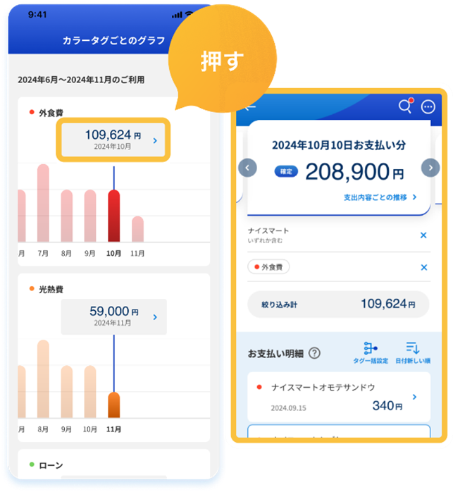 ③ カラータグでお支払いの傾向や内訳が確認可能