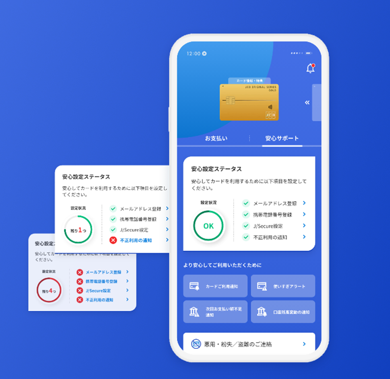 フォーデジット 末成さん:ご自身でカード利用額をコントロールしたり、不正利用防止の観点で自身の利用範囲を制限できる「My安心設定」がおすすめです。様々な機能の中でも特に、クレジットカードを安全・安心に利用するためのセキュリティ機能の設定状況が「安心設定ステータス」として可視化されているのは、現状他社にはない機能です。どうしたら会員様にわかりやすくお伝えできるかを非常に工夫した機能ですのでご活用いただけると嬉しいです。